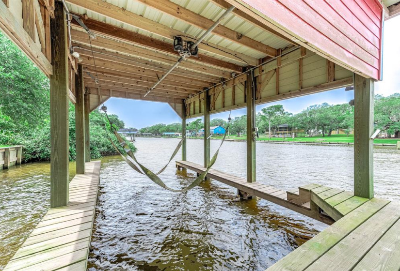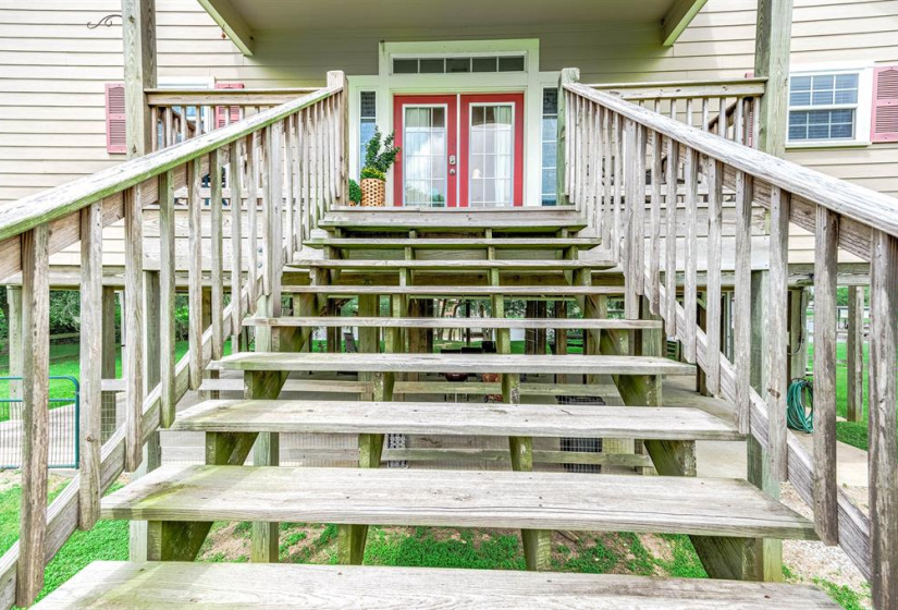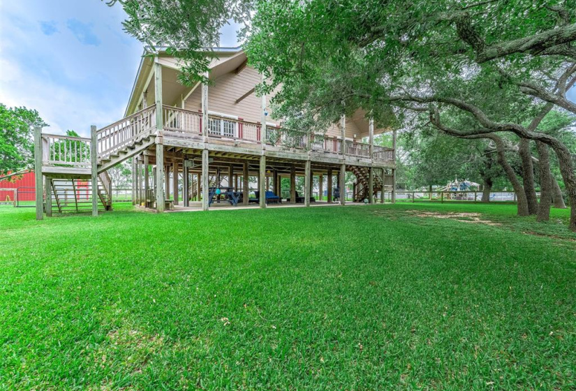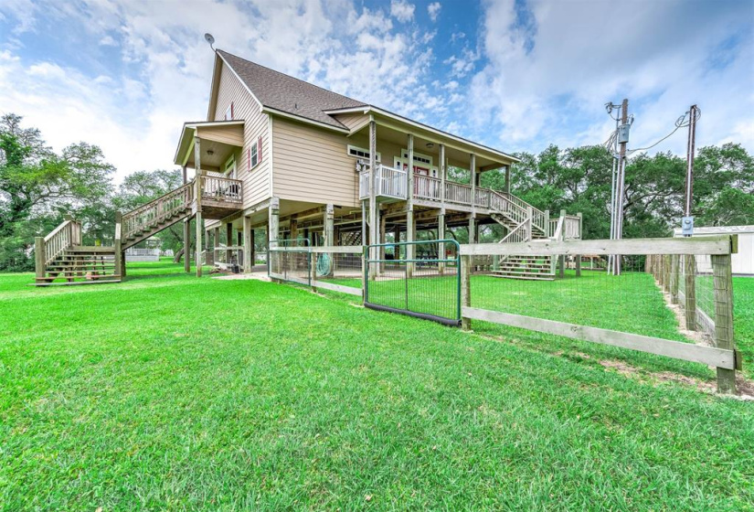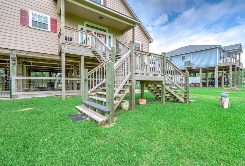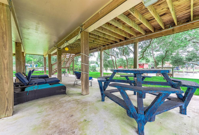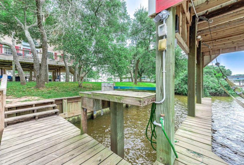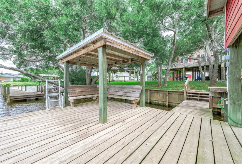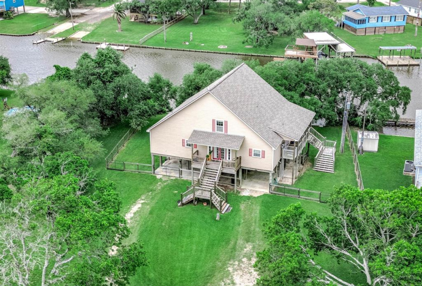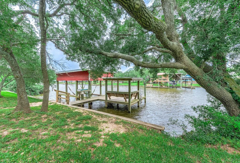 Tucked away on a quiet dead-end road, this unique waterfront property on Caney Creek offers the perfect blend of peace, privacy, and coastal lifestyle. Sitting on 3/4 of an acre shaded by mature oak trees, this home is ideal for weekend escapes or full-time living. 3-bedroom, 2-bath layout features an open-concept kitchen, dining, and living area that flows seamlessly onto a huge deck with elevated views of the water! The primary bath is built for relaxation with a soaking tub, oversized walk-in shower, dual vanities, and a large walk-in closet. A standout feature is the 40×60 metal shop with finished guest quarters and full bath, perfect for visitors, hobbies, or extra storage. Outside, enjoy a large private pier with boat lift—ideal for fishing or launching straight to Matagorda Bay, the Intracoastal Waterway, or the Gulf. With a new roof, elevated lot, and just minutes from Sargent Beach, this property is a rare find on the Texas coast.