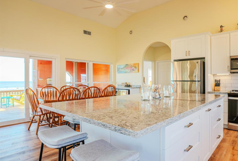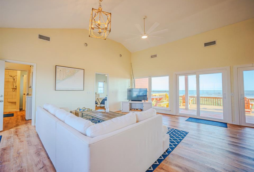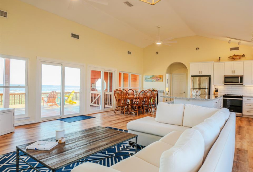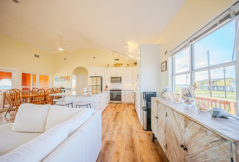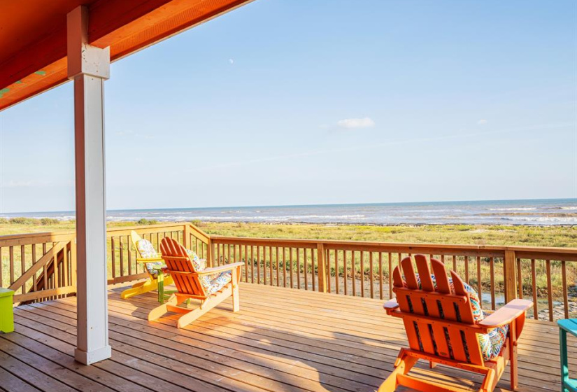 Welcome to this stunning beach house in Sargent TX where breathtaking Gulf views sunsets & coastal living await. This 3 bedroom 2-bath home offers a thoughtful split floor plan with an open concept kitchen dining and living area perfect for gathering & enjoying the views. The spacious primary suite includes a walk-in closet with excellent storage , vanity area and a Gulf view! Each of the guest rooms also features large closets. Conveniently located laundry room adds practicality. Enjoy the sights and sounds of the Gulf along with incredible wildlife viewing from the expansive back deck. The property is being sold turnkey furnished with everything in place from kitchenware to extra linens making it an easy transition into an income-producing short-term rental. The oversized lot located next to an easement ensures added privacy and greenspace. Storm windows on the Gulf side shutters on the rest and a cargo lift for convenience complete this coastal gem. Don’t miss your chance!