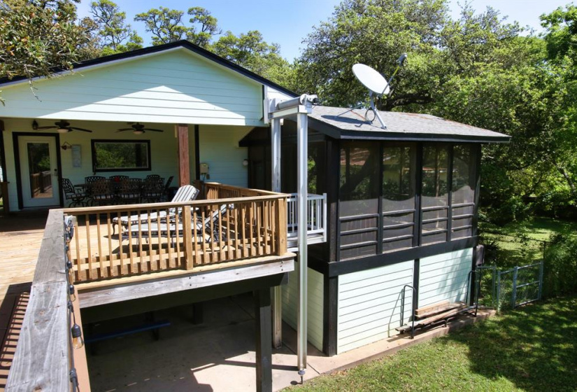 Do you want to DOUBLE your pleasure and DOUBLE your fun? This home offers just that!!! With Conjoined porches with a walkway leading to the boat house which is all decked out for additional entertaining area. Fenced backyard for your fur babies. Enjoy the screened in area off the back deck what also has wiring for a hot tub. NEWER pier and boathouse featuring Pex Decking. Unit #1 Offers a living room with high ceilings. The kitchen dining combo provides a nice space. The NEWLY RENOVATED bathroom sits between the bedrooms in this unit. Unit #2 Features a Beautiful kitchen with granite countertops with lots of space for family. The Bedroom has a generous walk-in closet and a beautiful bathroom. This property also offers you the opportunity to use it as a Vacation Rental for extra income. Do not miss out on this opportunity!!!