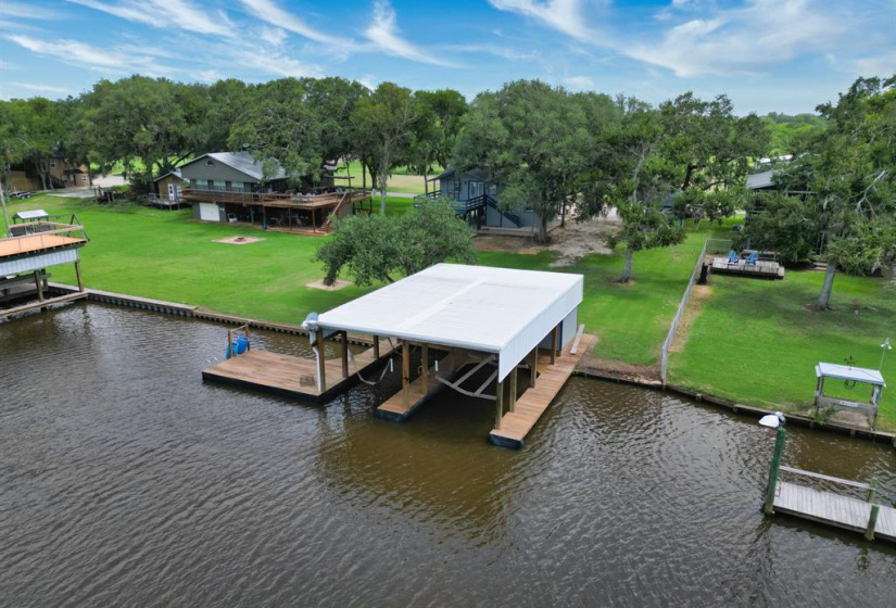 STOP, DROP AND BOAT!!! This home is situated on Caney Creek and it is a fisherman’s dream!!! This home has a GEORGOUS PIER, DOCK, CLEANING STATION, Bulkhead AND DOUBLE BOAT HOUSE WITH A STORAGE AREA ATTACHED with Ice maker!!! Downstairs boasts plenty of shade with LARGE sleeping quarters with its own full bathroom as well as utility room that includes a washer and dryer. Upstairs has a full bathroom as well as 2 Bedrooms. The open concept of Living, kitchen and dining room provides plenty of entertaining space. Enjoy the Large deck off of the Living Area for evening sunsets or just enjoying the view of boats passing by!!! If that is not emought there are also 3 lots directly across the street that are INCLUDED! Well desired area of Sargent with plenty of Bait camps, minutes by boat to the ICW, and Sargent Beach with Sargent’s renowned fishing!!! Do not let this one pass you by!!!
